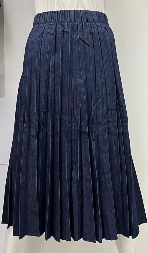 SOPHIA MESSY PLEATS DENIM SKIRT-29" BLUE DENIM