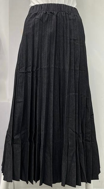 SOPHIA MESSY PLEATS DENIM SKIRT-MIDI BLACK DENIM