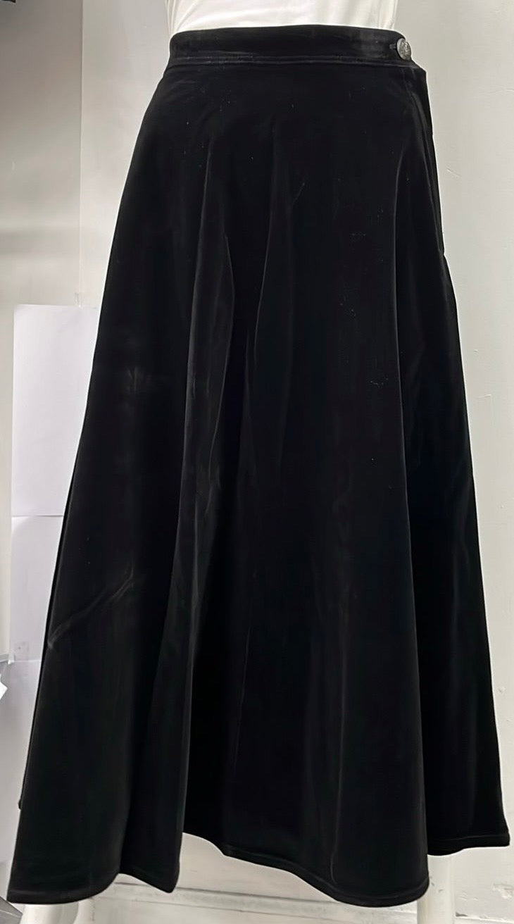 MAXMRKT FLAIRY VELVET SKIRT W SIDE BUTTON & ZIPPER-MIDI BLACK