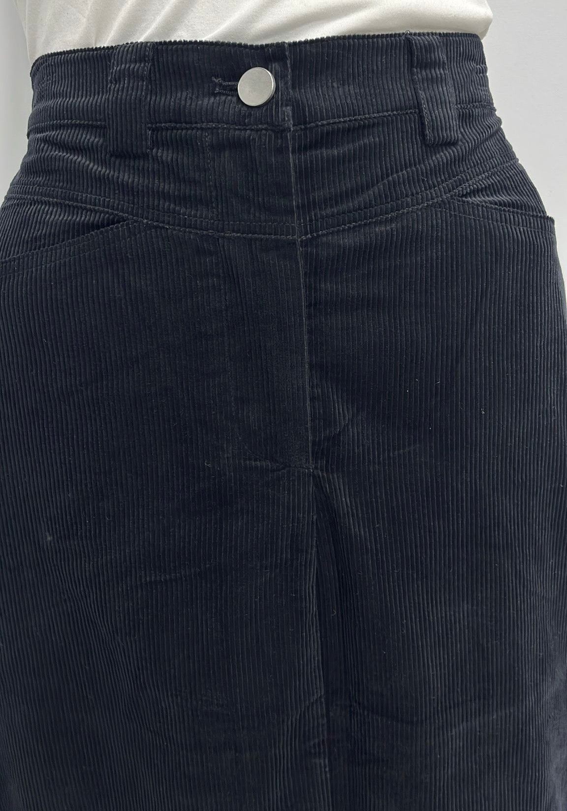 LATI TUDE CORDUROY SKIRT W FRONT POCKETS-MIDI BLACK