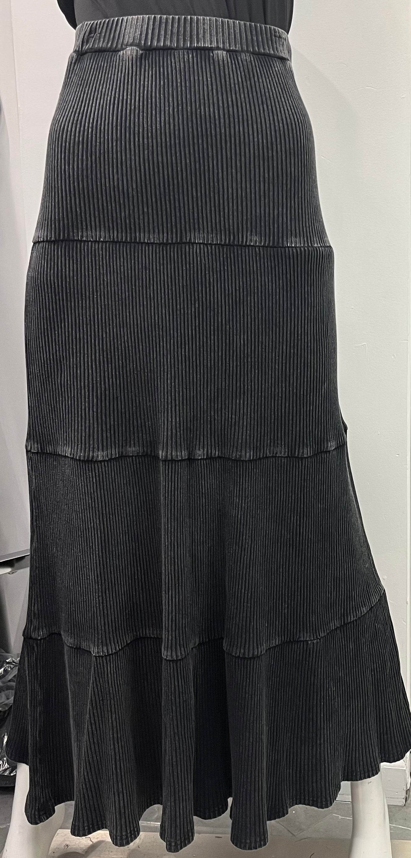 SPADES RIBBED TIER MAXI SKIRT BLACK WASH