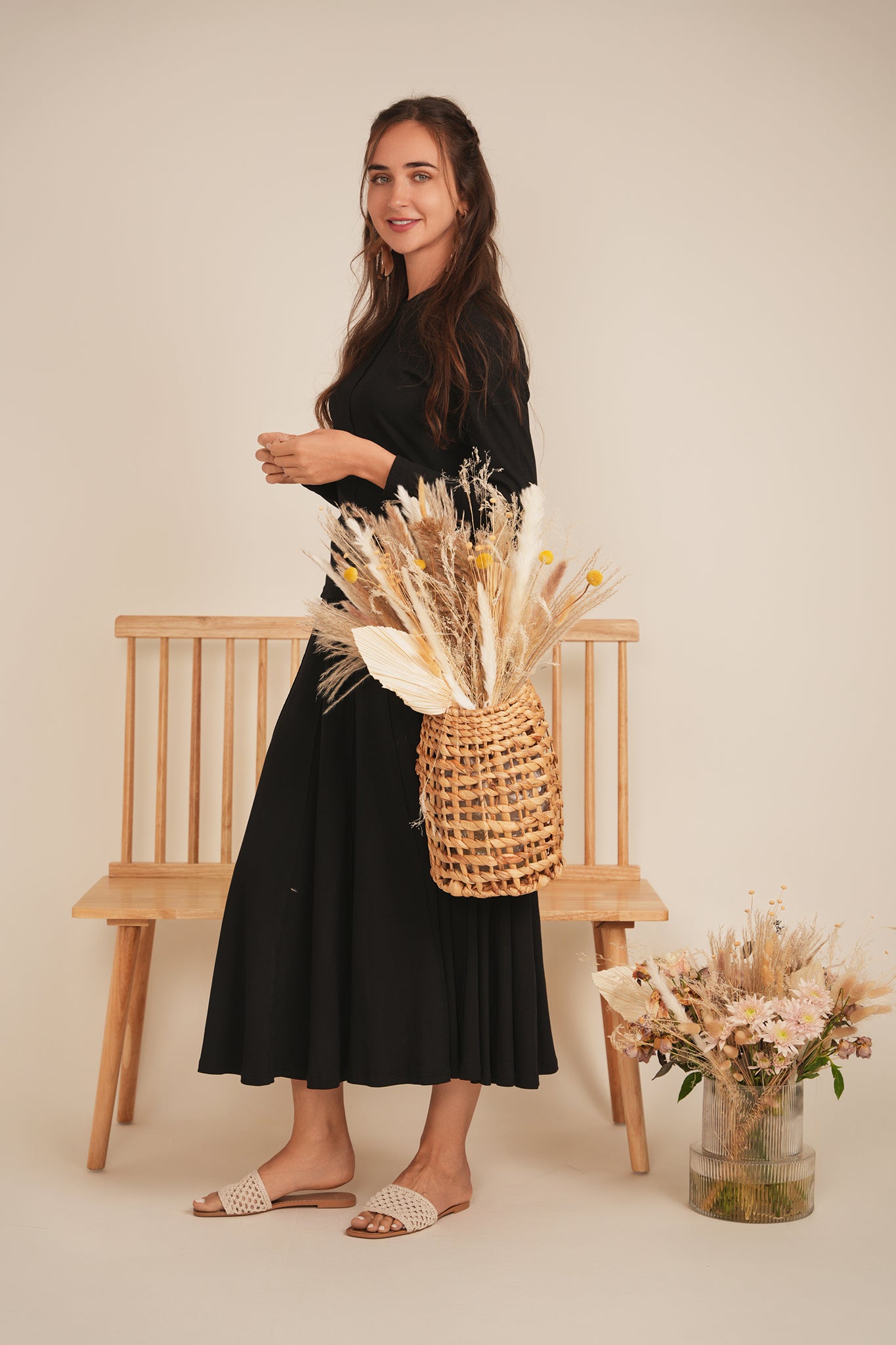 Increase quantity for POSITIVE RIBBED PANELED SKIRT-MIDI BLACK