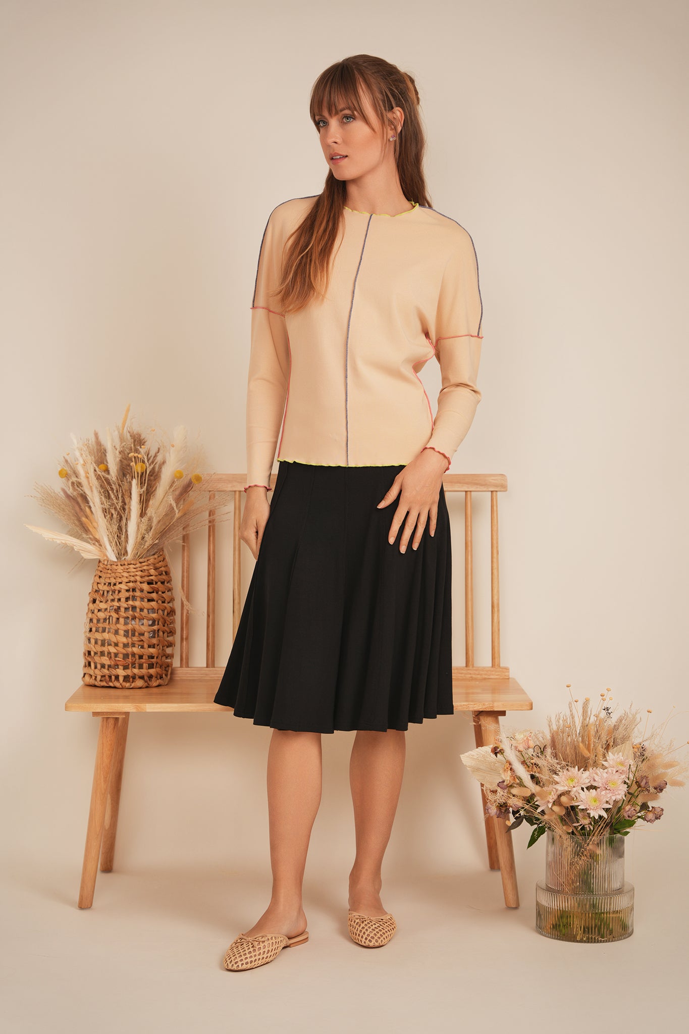 POSITIVE RIBBED PANELED SKIRT BLACK