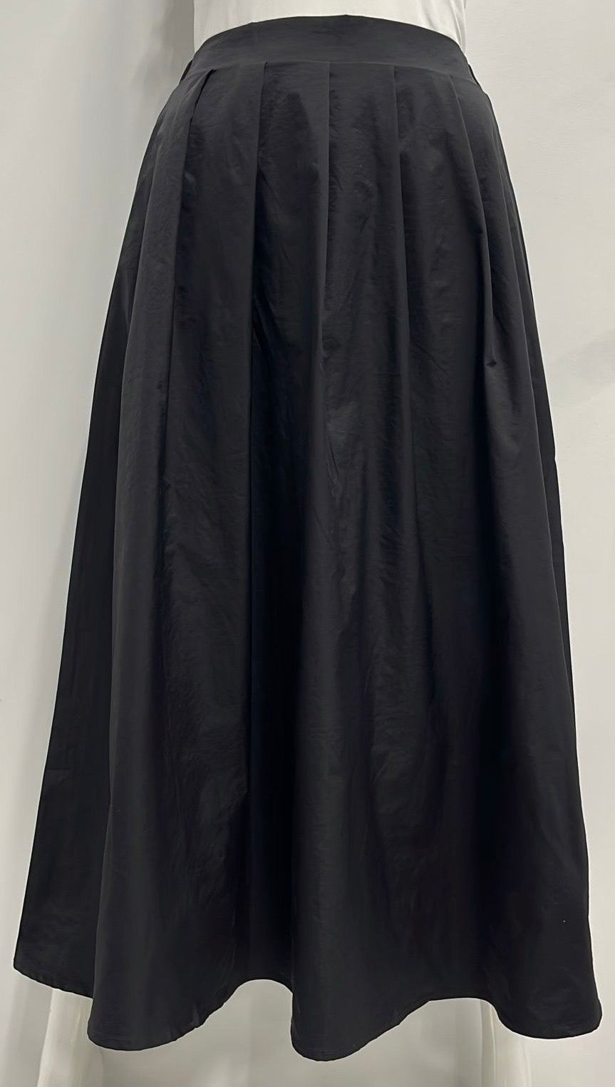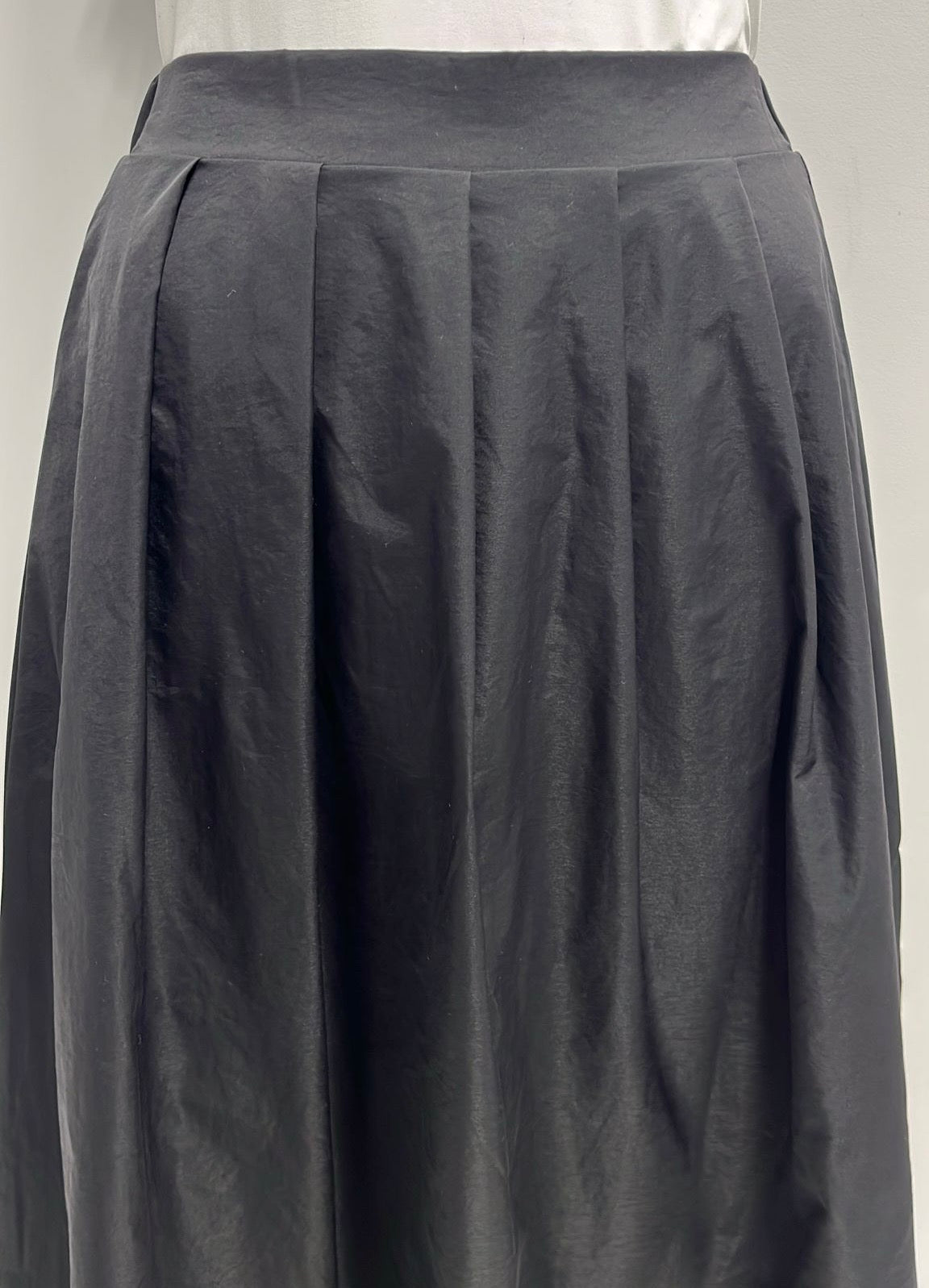 PEODE DESIGN TAFETTA FRONT PLEATED SKIRT-MIDI BLACK