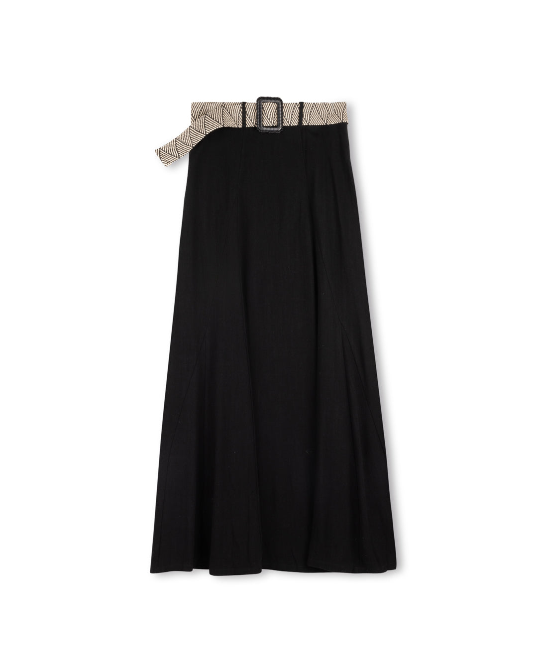 SHIFT LINEN SKIRT W INSERTS & BELT-MAXI BLACK