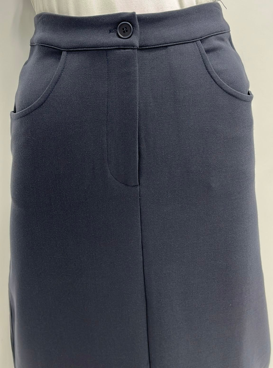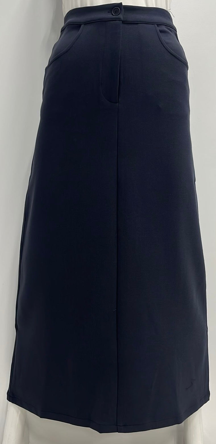 Increase quantity for STORY STRAIGHT A-LINE WOOLY SKIRT W POCKETS-MIDI NAVY