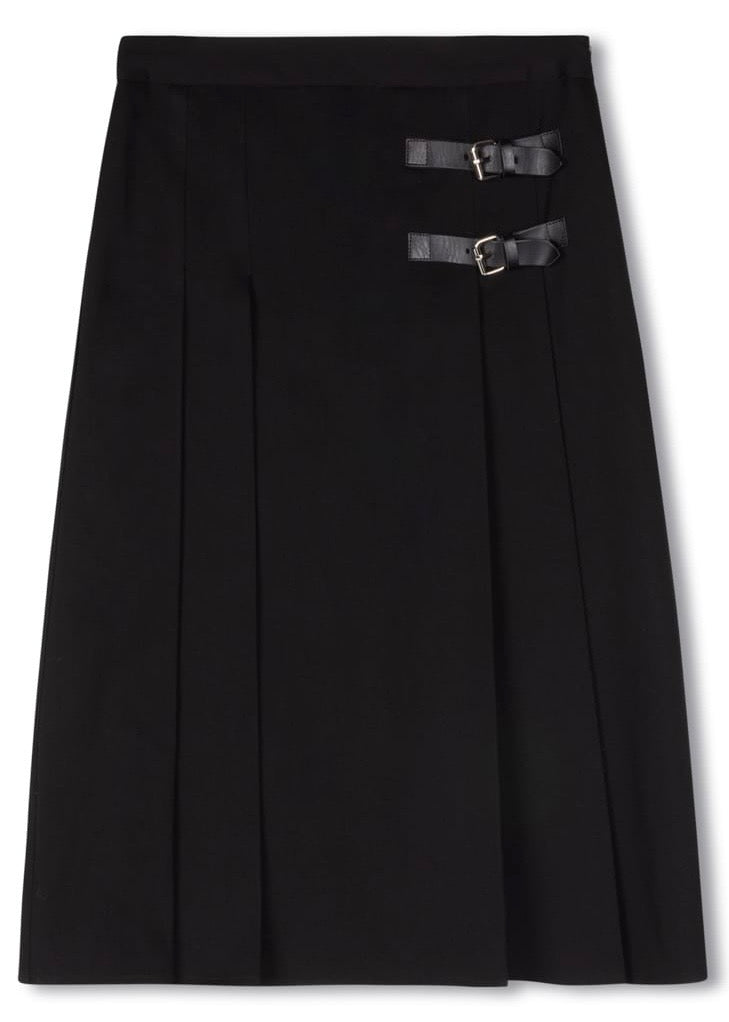 SHIFT PLEATED SKIRT W SIDE BUCKLE BLACK