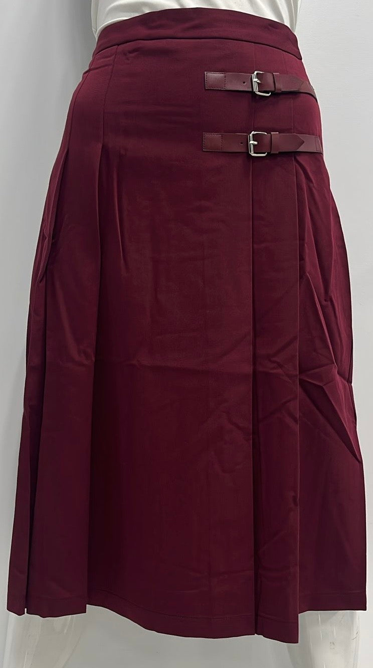 SHIFT PLEATED SKIRT W SIDE BUCKLE BURGUNDY