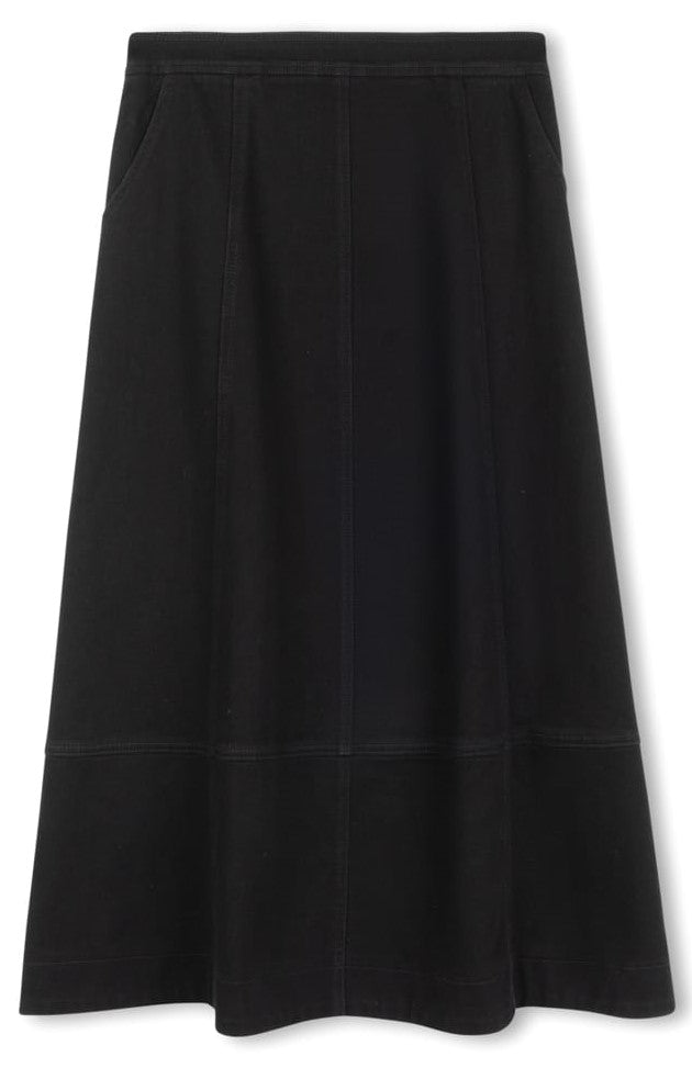 SLATE FRONT PANELED SKIRT W POCKETS-MIDI BLACK